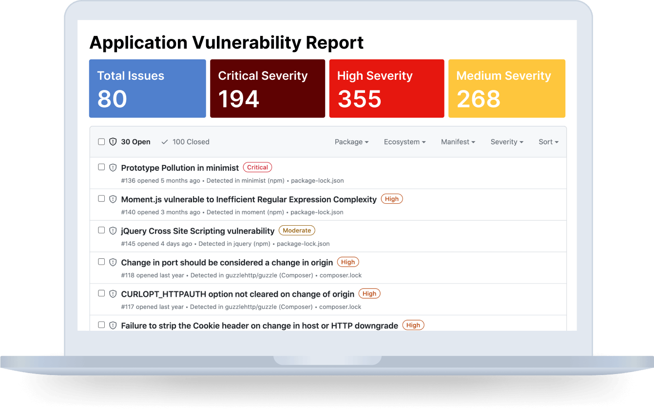 Through our integration with GitHub Dependabots, we’ll show all third-party code in all your code repositories, their known vulnerabilities and their upgrade status. We'll then maintain them with a solid patch management plan for a predictable monthly fee.